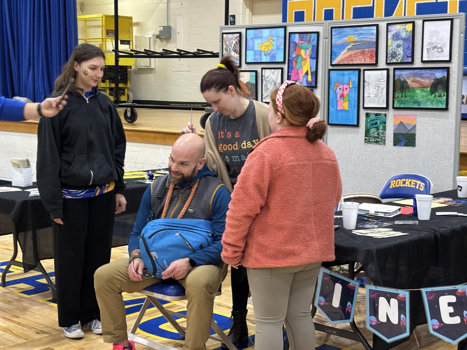-Future Ready Scheduling Fair! -Face-painting from Ms. Salzl at the Scheduling Fair -Scholarship reps for Seniors at the Scheduling Fair -Senora Garcia recruiting Spanish students -Mr. Dorsey going the head-painting route |