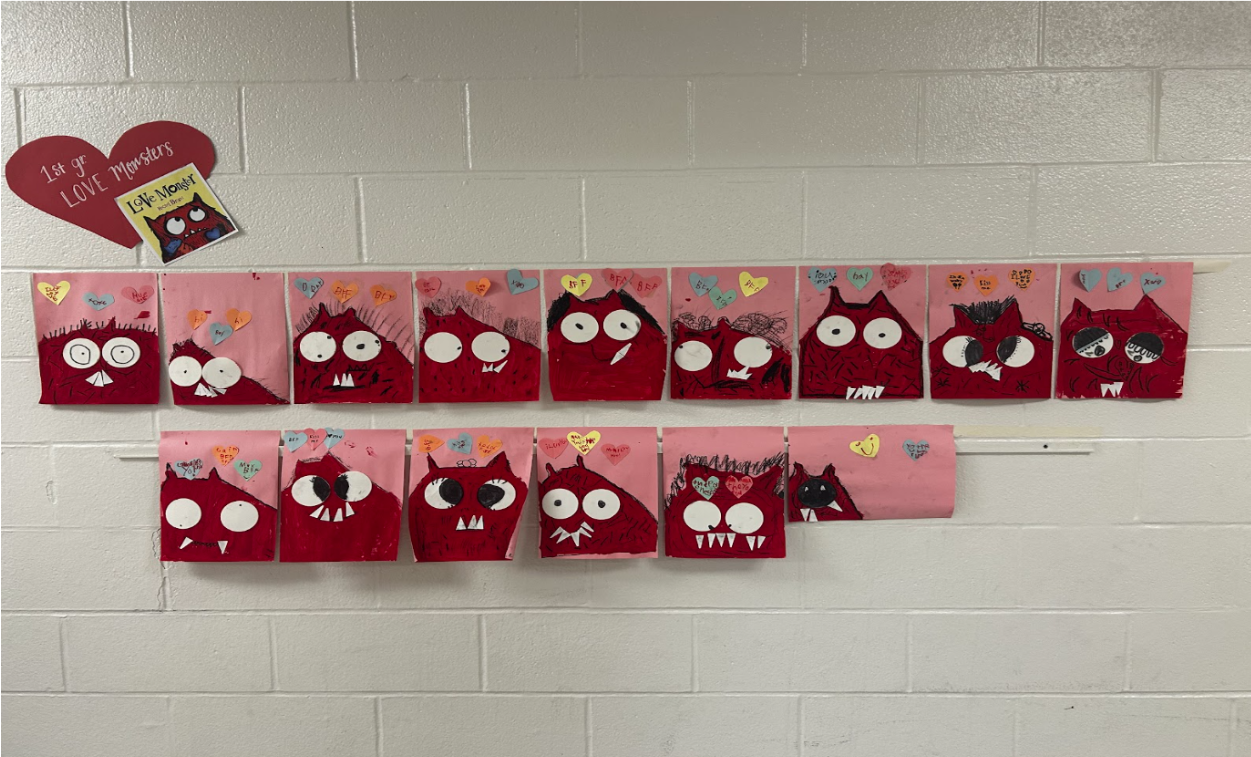Love was in the air—and all over the art room walls—this week! Inspired by the story Love Monster, Mrs. Keuffer’s First Graders have been busy creating their very own fuzzy, toothy, and totally lovable companions. While these monsters might have sharp teeth and big, googly eyes, they have even bigger hearts. |
