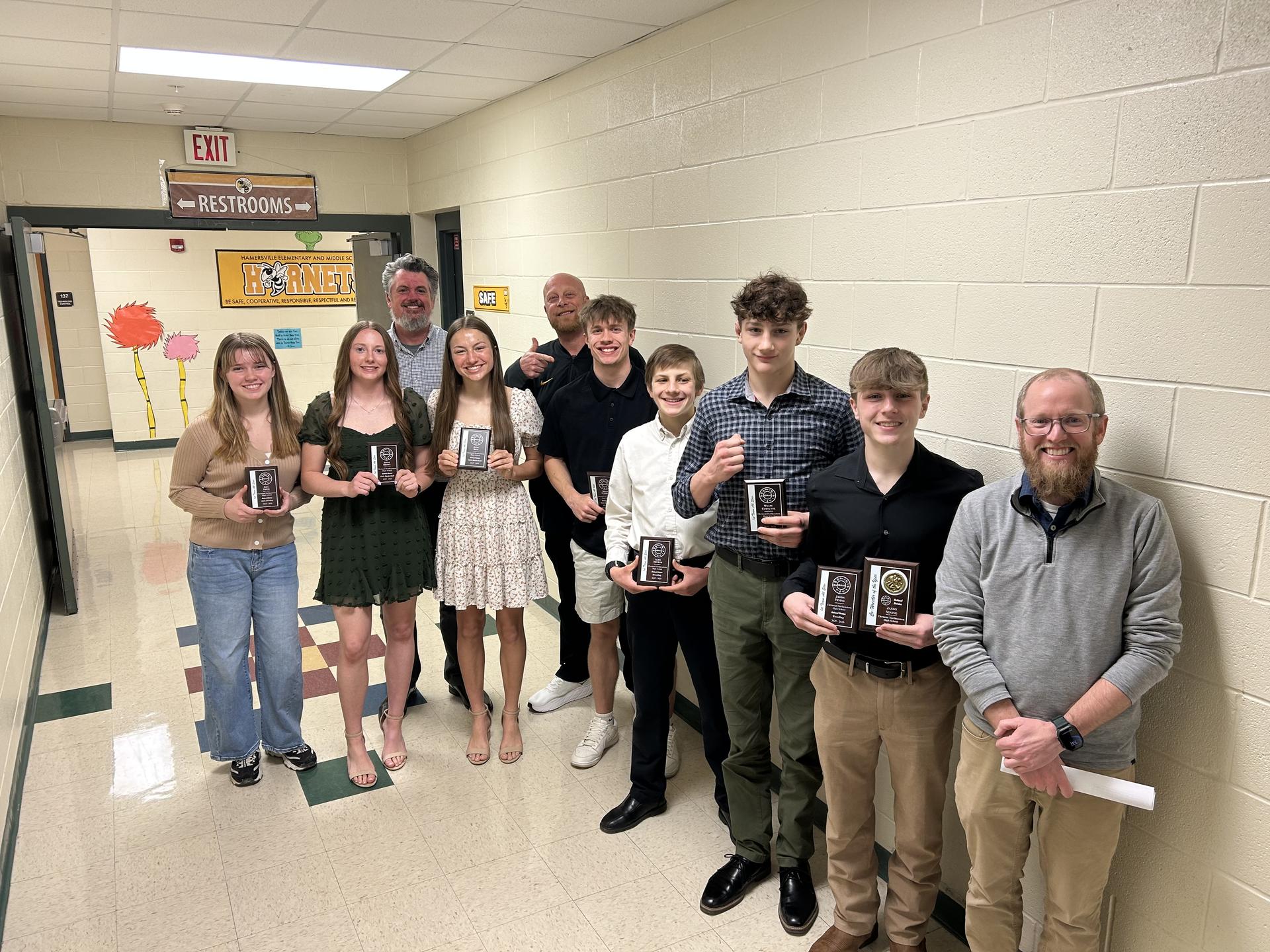 SBAAC All Star Banquet was held on Tuesday March 10th. CNE was represented by the following winter sport athletes. Boys Basketball: Brady Schmidt Girls Basketball: Julia Best and Jenna Brown Wrestling: Alex Neukam, Jaxon Vining and Wyatt Curnutte Bowling: Jada Smith Academic Quiz Team: Quinton Himes