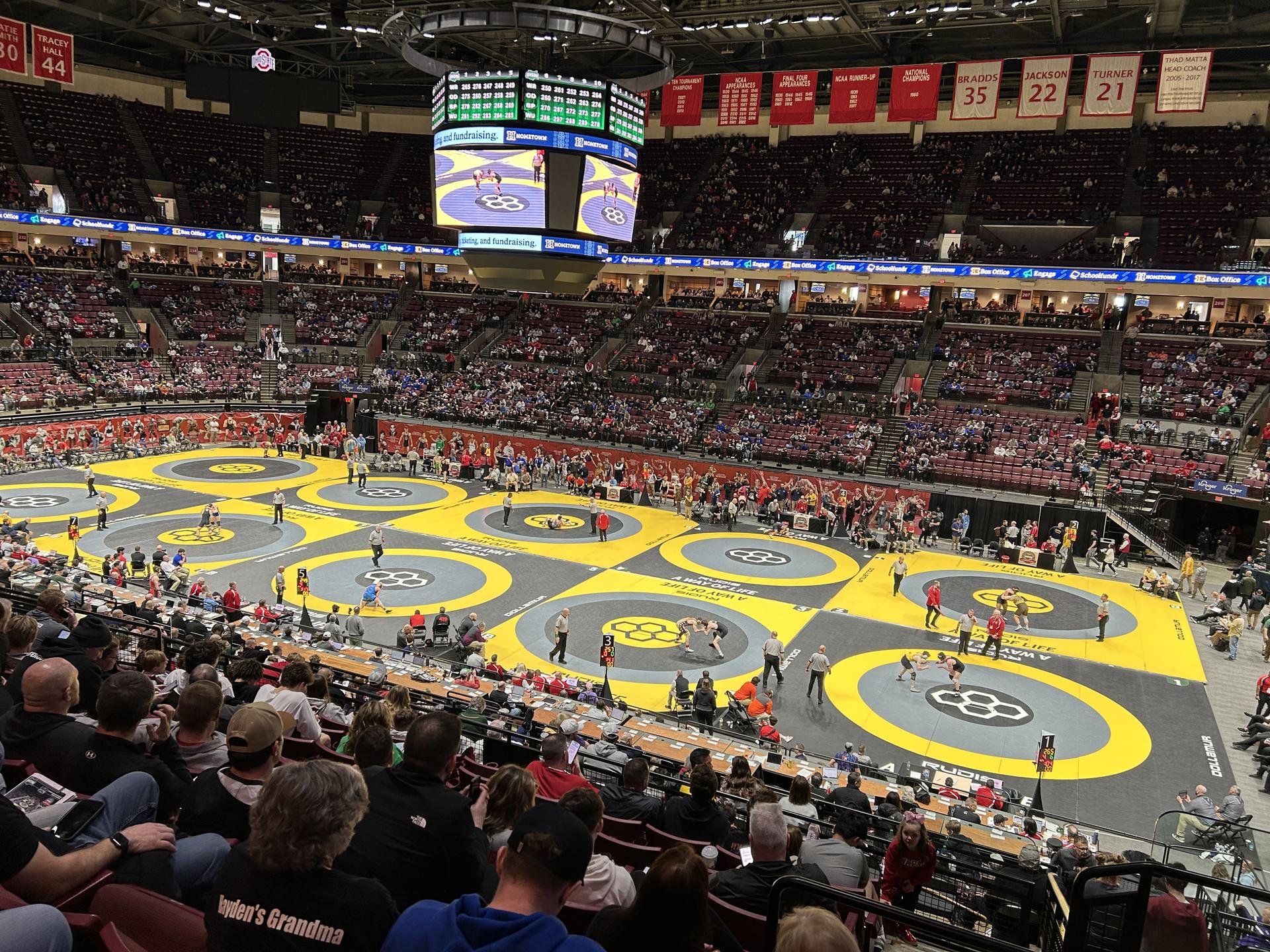 Wrestling: Coach Scott Wells and Coach Tom Donahue The final winter season athletic event was the OHSAA Wrestling Championships in Columbus March 13,14,15. Jaxon Vining and Liberty Johnson both qualified for the state finals. Congratulations to both of them for such a great accomplishment. Jaxon battled courageously in his two opening day matches but did not make it through to the second day. Liberty won her first 2 matches before dropping a match and continued on into Sunday. Winning again on Sunday morning before losing her finals match.